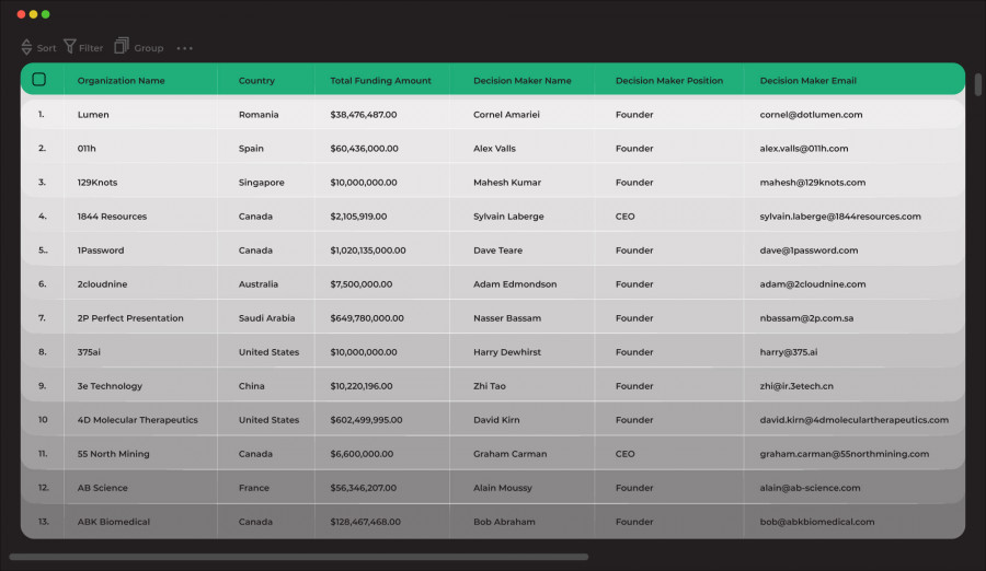 | Decision maker contacts at each company | Unable to find the decision maker |